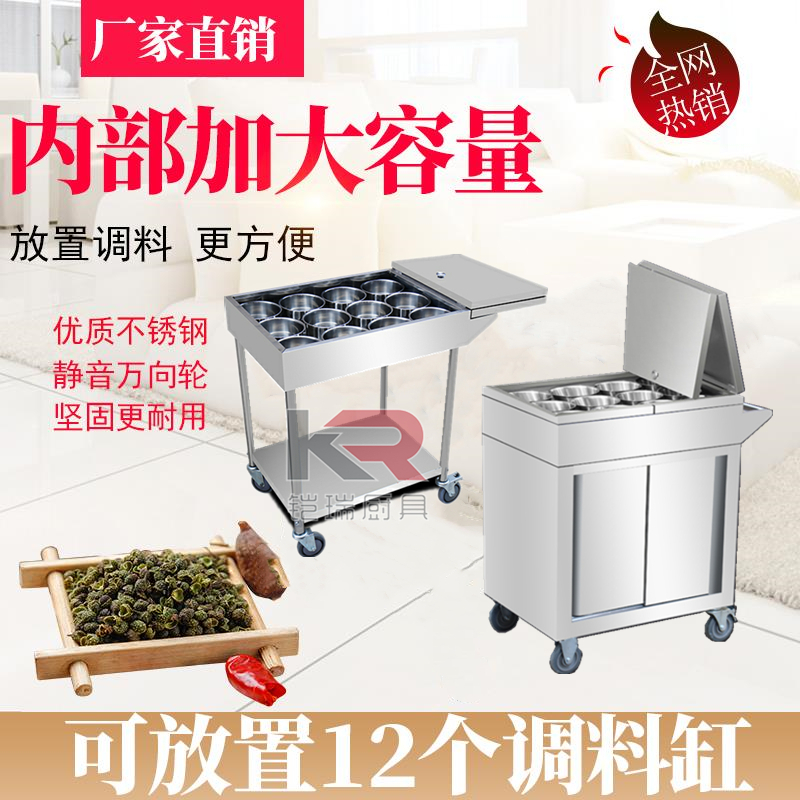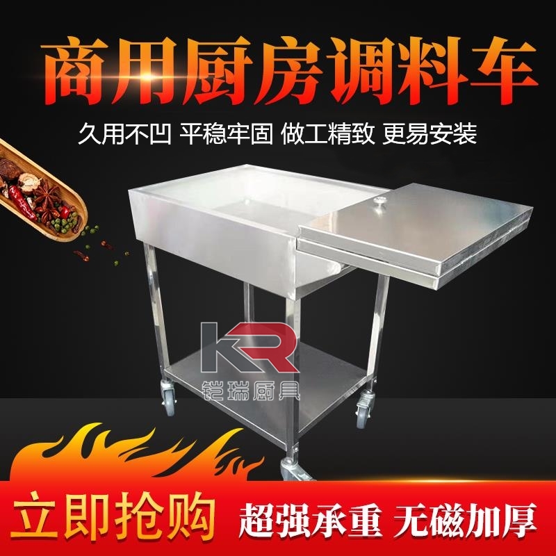 Stainless steel seasoning cart commercial kitchen seasoning cart restaurant seasoning table seasoning cylinder hand push mobile dining cart trolley