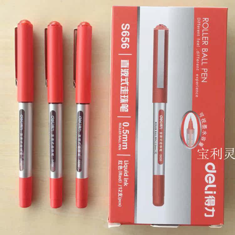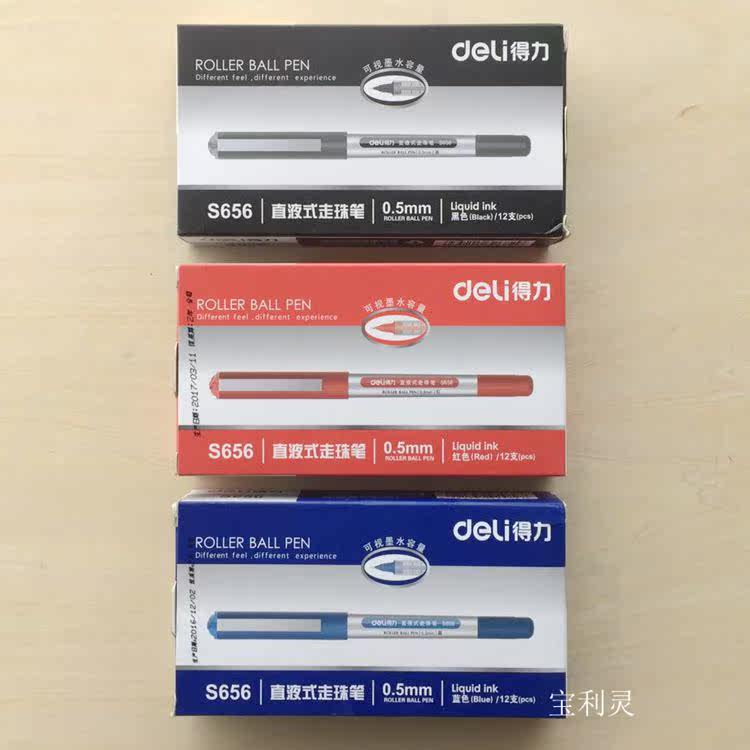 12pcs Deli S656 straight liquid water-based ballpoint pen Black Blue Red 0 5 Student ballpoint pen office signature