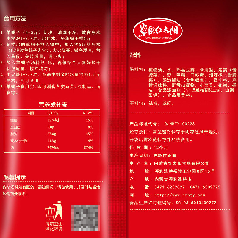 Grassland Red Sun hot pot base material Sheep scorpion seasoning 200g Old Beijing Sheep Scorpion hot pot base material seasoning