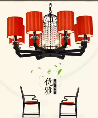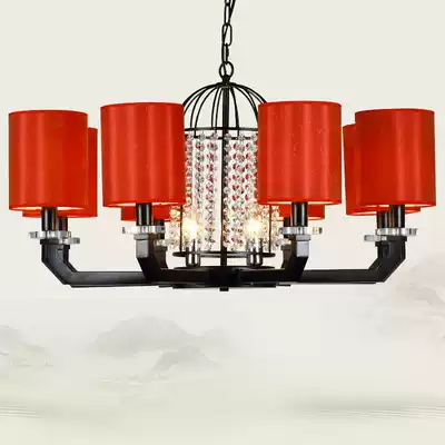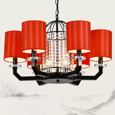 New Chinese dining room room chandelier big red fabric crystal lamp hotel box chandelier hotel engineering lamps