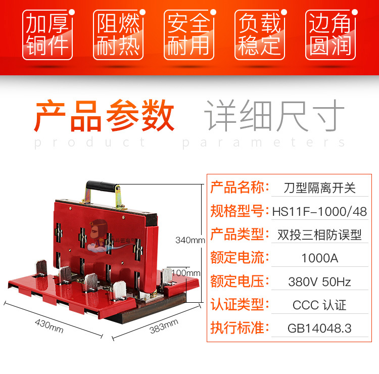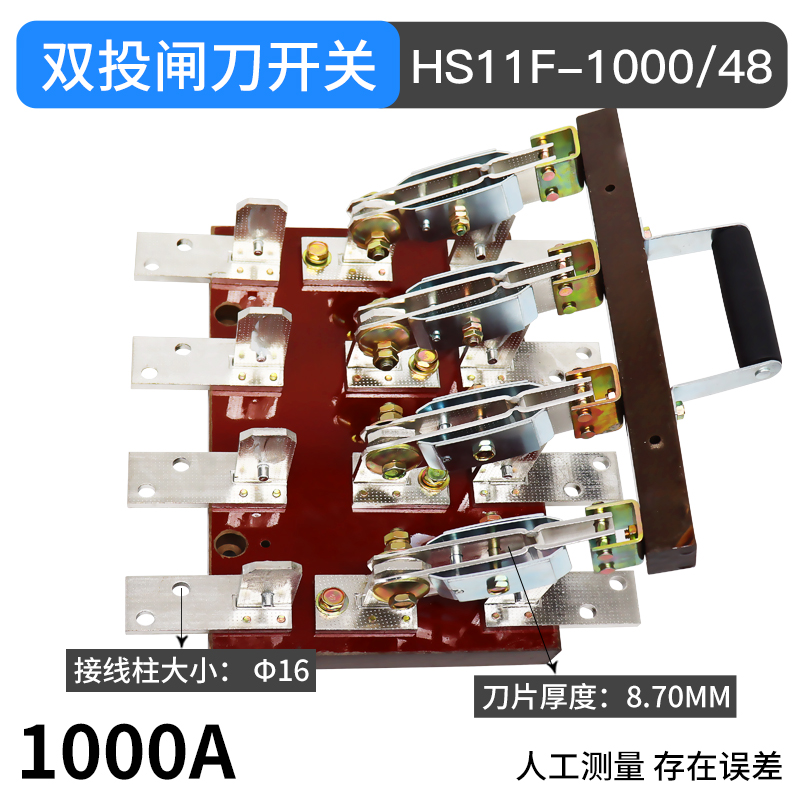 Double throw reverse knife switch HS11F-1000 48 three-phase four-wire 380V4P1000A two-way switch knife gate