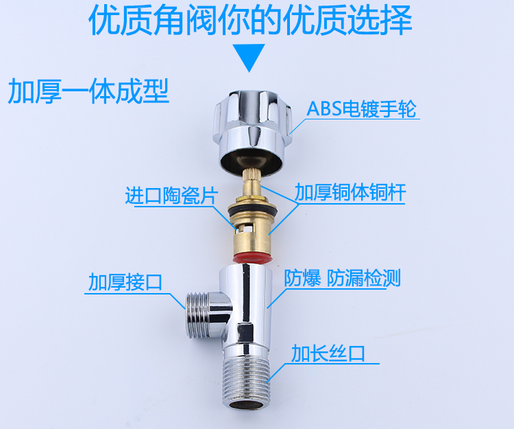 Copper core angle valve (blue label) Copper core angle valve (red label) All copper angle valve (no label) All copper angle valve (blue label) All copper angle valve (red label) 304 stainless steel flat wheel angle valve (red) 304 stainless steel