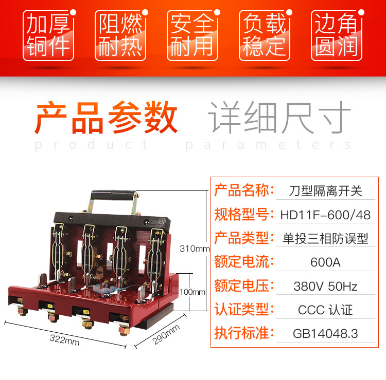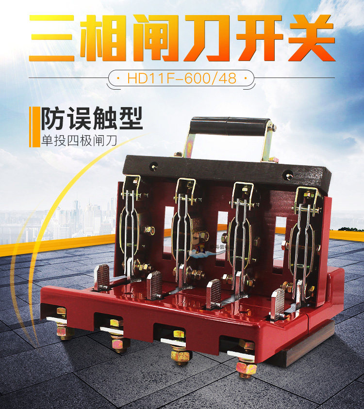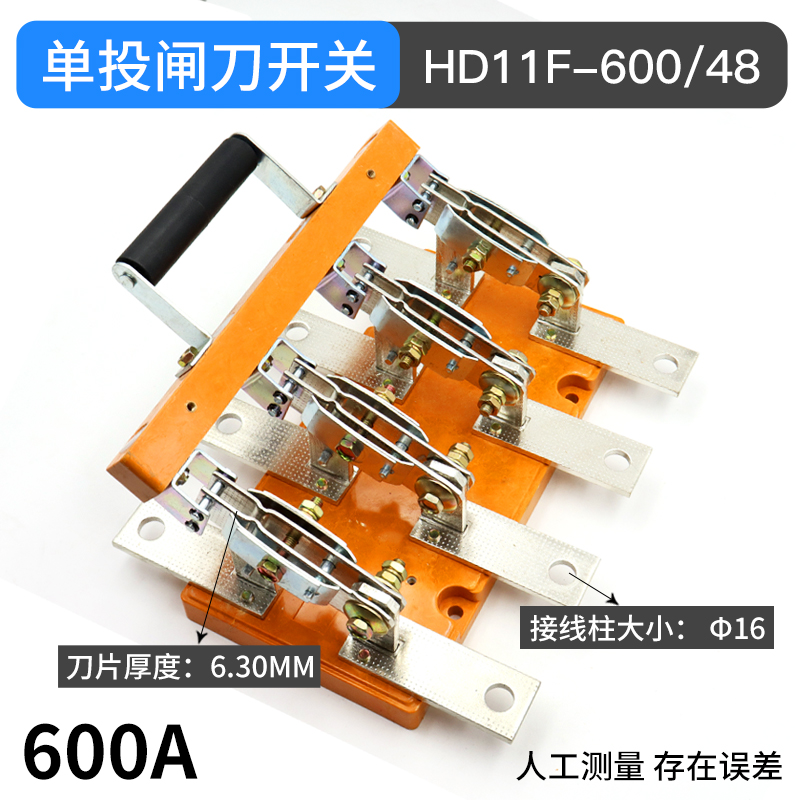 Single-shot knife switch HD11F-600 48 three-phase four-wire 380V4P600A one-way open knife switch