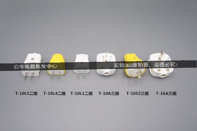 Bull plug 10A 16A triangle foot plug two feet two 220V flat three-phase air conditioner power plug without wire