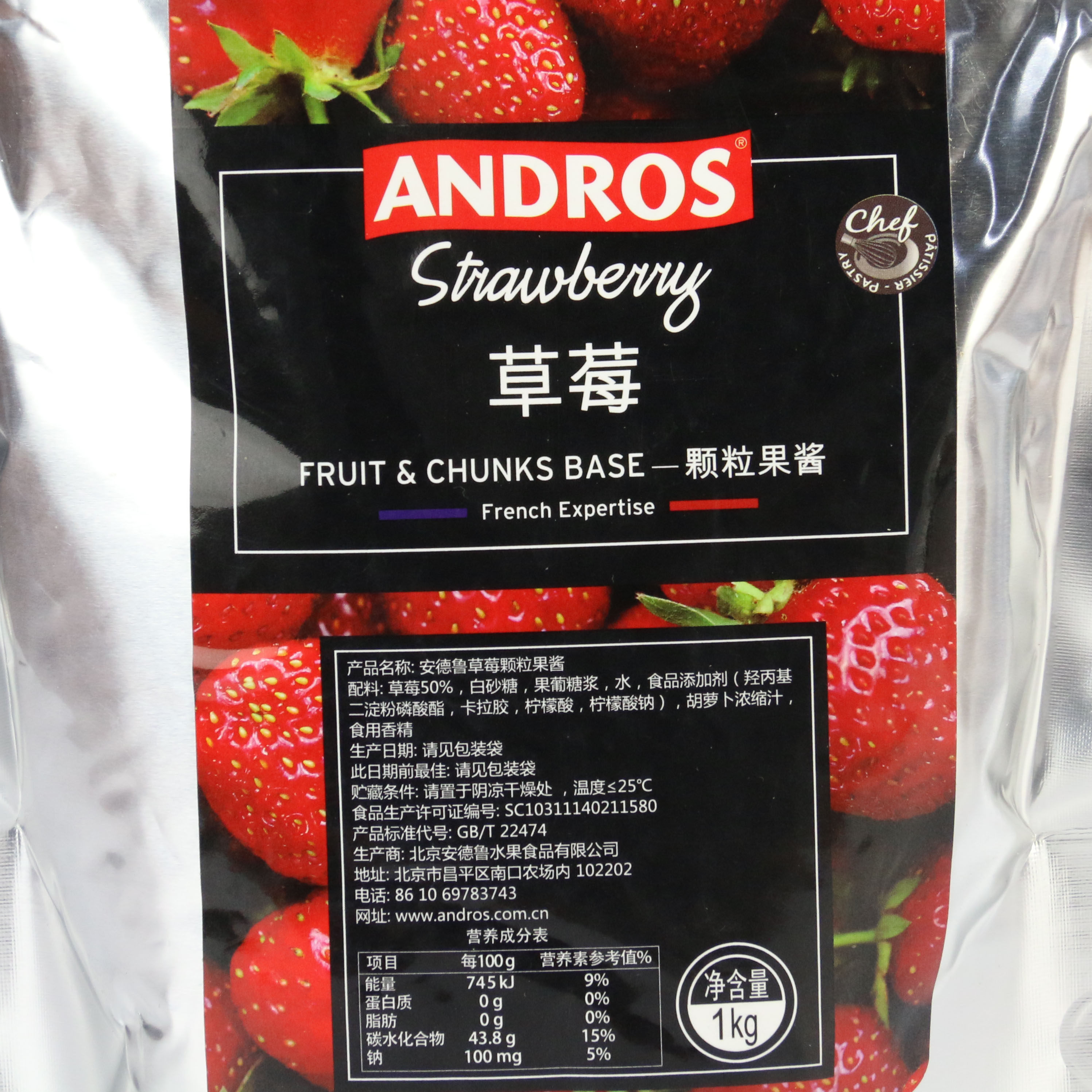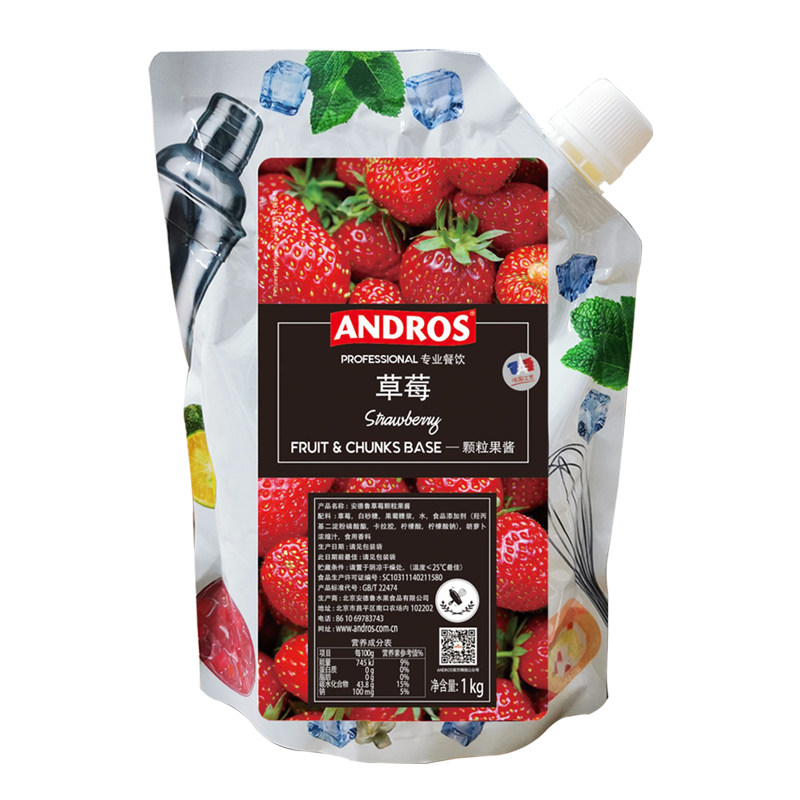 Andros Andrew Strawberry Particle Jam 1KG Milk Tea Brewing Beverage Baking Raw Material Imported Fruit Grain Strawberry Strip Sauce