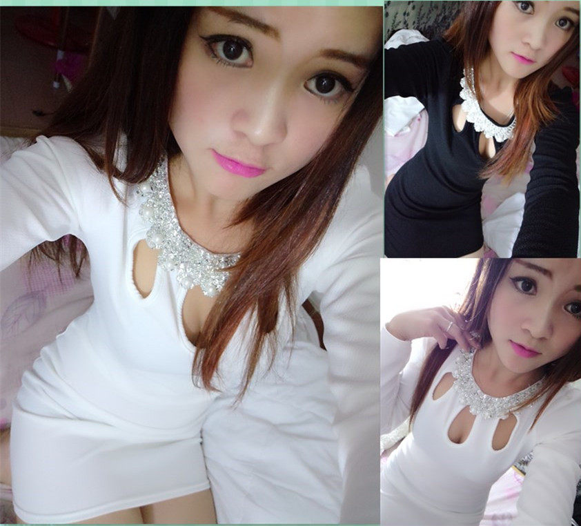 Online Red Spring Autumn New Korean Version Nightclub Women's Clothing Sexy Hollowed-out Inserts and Hip Long Sleeves of the Hip Long Sleeve Boom