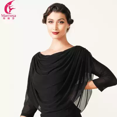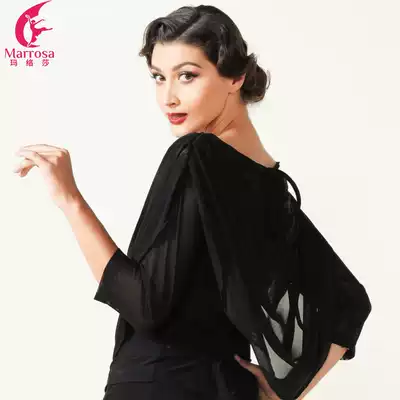 Rose dance 99 autumn and winter lace-up smoke blue rose red medium long-sleeved round neck shawl collar slim square dance practice top