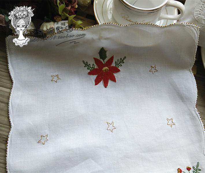 On December New * foreign trade export original single white pure cotton dining cushion disc mat vase cushion gold thread edge color embroidery