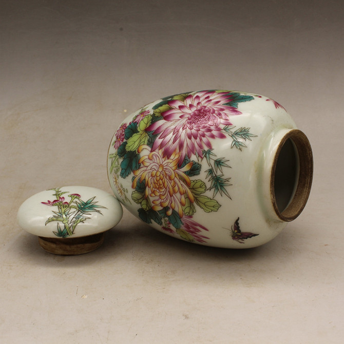 Republic Of China Pink Flowers Birds Tea Leaf Jars Ancient Play Porcelain Antique antique swing pieces collection factory goods to be old