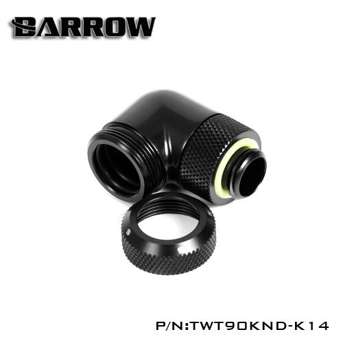 Water cooling connector Barrow black silver outer 14mm 90 degree elbow hard tube quick screw TWT90KND-K14