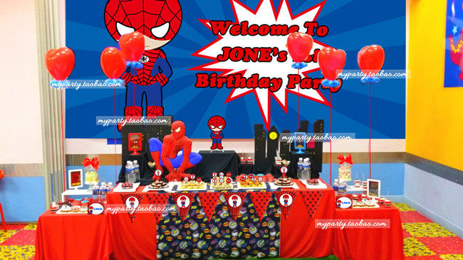 Superhero Spiderman children Baby birthday party Supplies Decorative Pull Flags Inserts Sweet table arrangement Custom