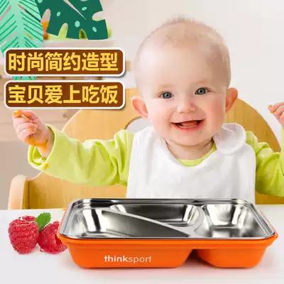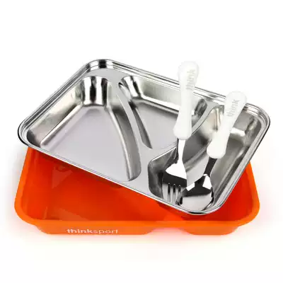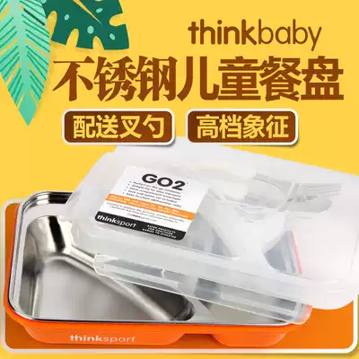 Thinkbaby go2 children's stainless steel tableware sealed bento lunch box with fork and spoon Baby grid plate
