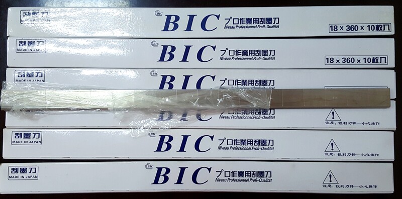 BIC scraping ink knife blue box white box length 360mm with flap 18 gg pad printing press blade BIC blade versatile and durable