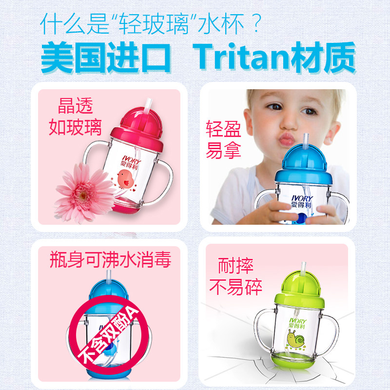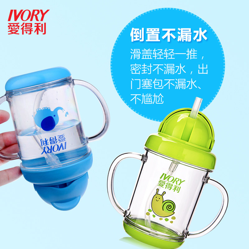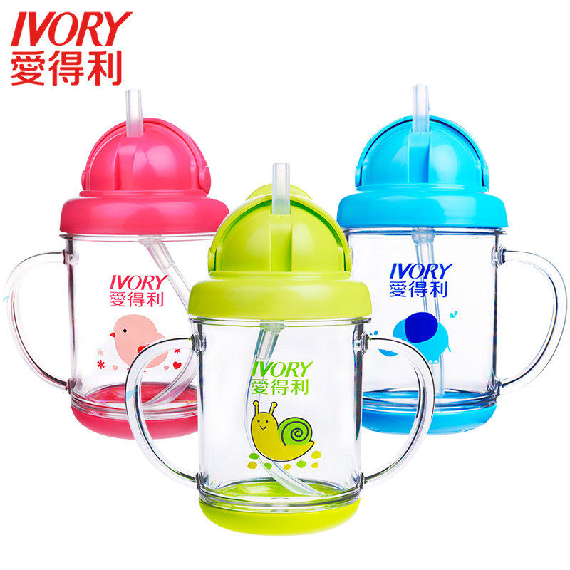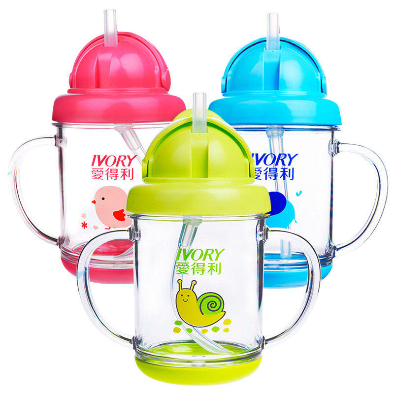 Aideli children's water cup straw cup fall-proof cute cartoon kindergarten water leak-proof cup with handle cup