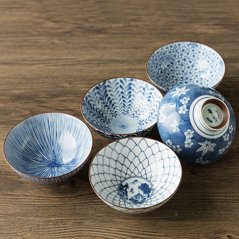 Pottery Anecdoge Japan Home Bowls Green Flowers Ceramic Rice Bowl Light Peak Day Style Cutlery Rice Bowls of Blister Noodles Bowl Green Flower Porcelain Small Bowl
