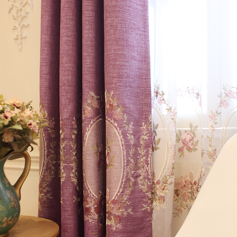 Custom American Korean French pastoral linen cotton shading palace rose embroidery curtain window screen Monica