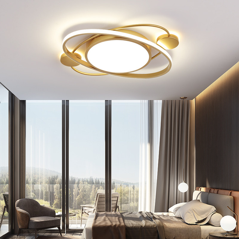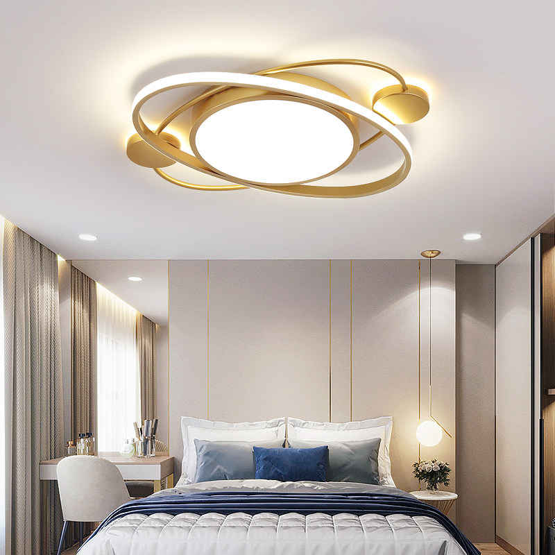 Bedroom lamp Northern European houseroom LED ceiling lightWarm master bedroom lights creative luxury golden round study lamp
