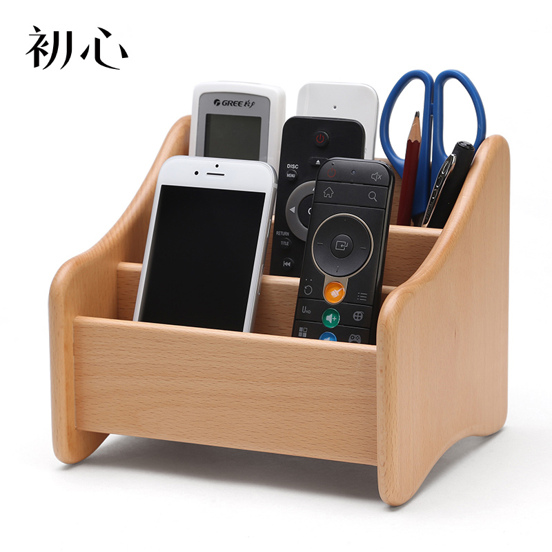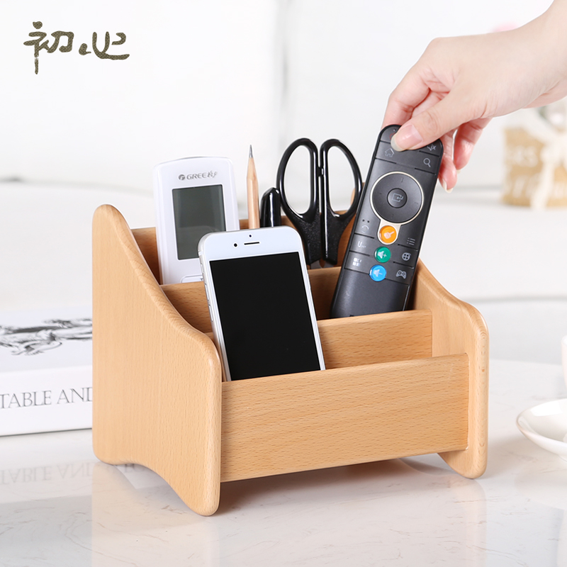 First heart wooden remote control storage box living room creative office desktop wooden storage rack cosmetics storage box