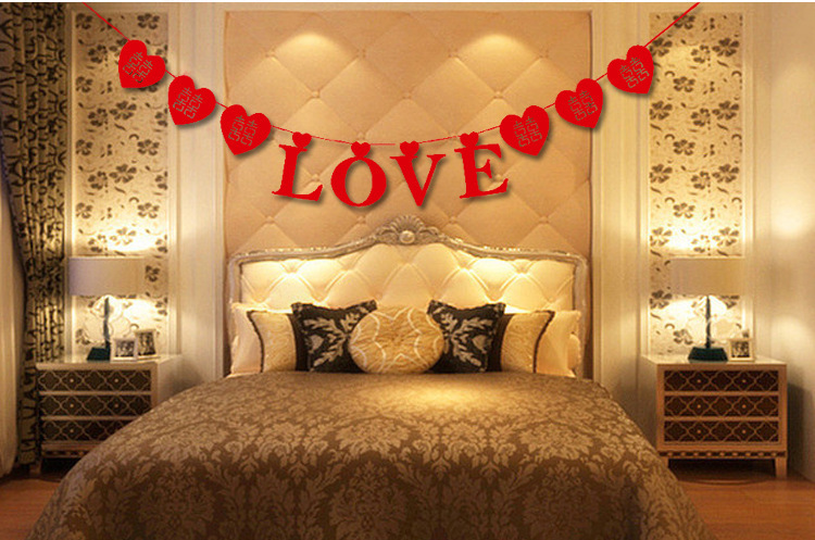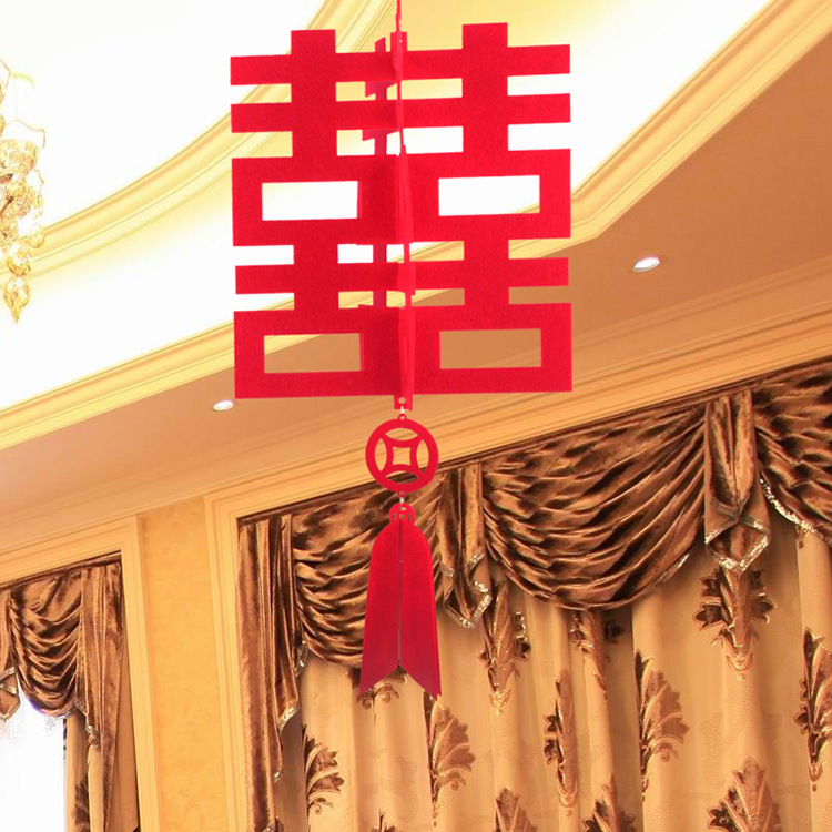 Wedding supplies Wedding room non-woven hanging decoration Laxi La flower decoration Living room happy word Wedding door hanging curtain decoration props