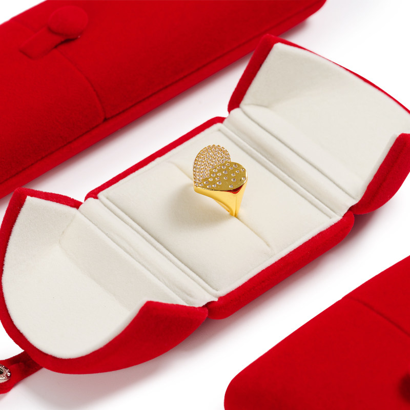 FANXI RING BOX WEDDING Wedding Courting Diamond Ring Box Velvet Ornaments Three Gold Jewellery Packaging Boxes Red H028