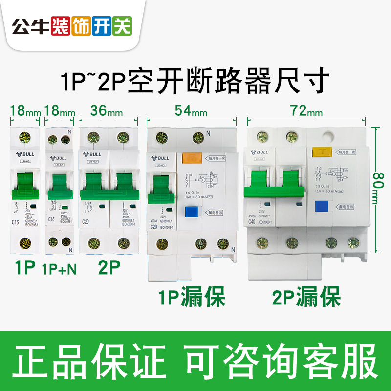Bull 32a leakage protection air switch with leakage protector 220v household switch three-phase air open circuit breaker 2p
