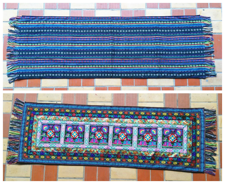 National style spot cushion Zhuang brocade Chinese retro embroidered long sofa cushion table flag bed flag indoor fabric decorations