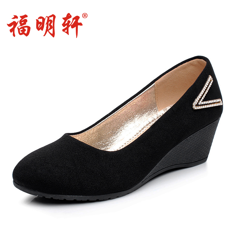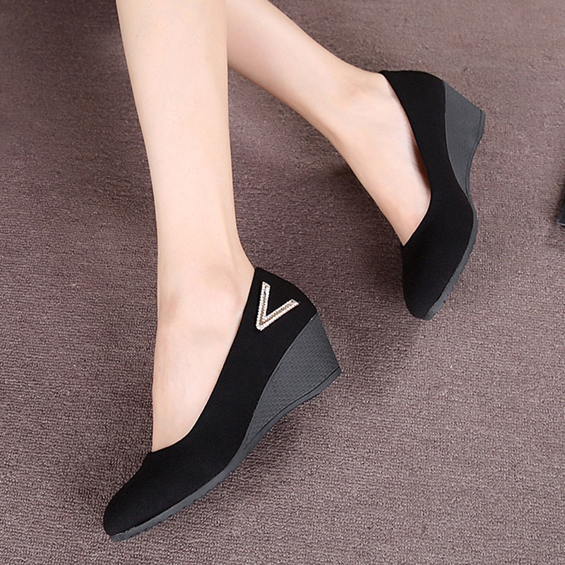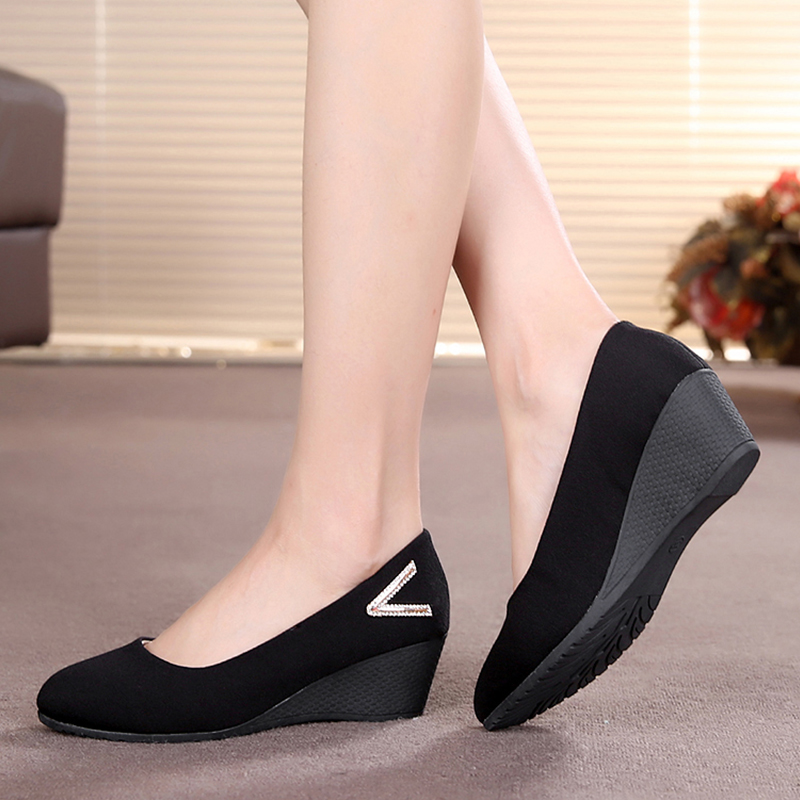 Wedge single shoes old Beijing cloth shoes women's shoes black high heels cover feet professional work shoes tooling shoes fashion casual