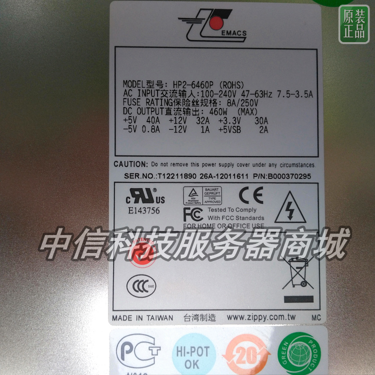 Original Dress New Giant Zippy HP2-6460P Rated 460W Tower Server Medical Workstation Power