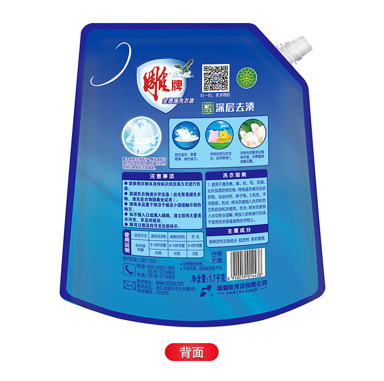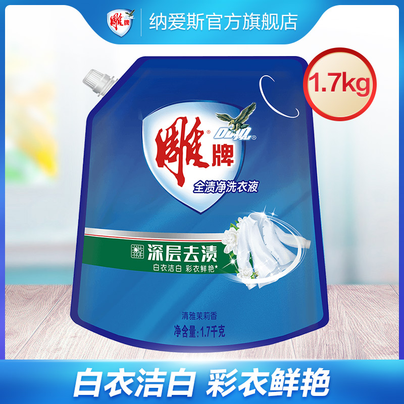 Carved laundry detergent full-stain jasmine fragrance deep stain and lasting fragrance 1 7kg bag * 6 wholesale household