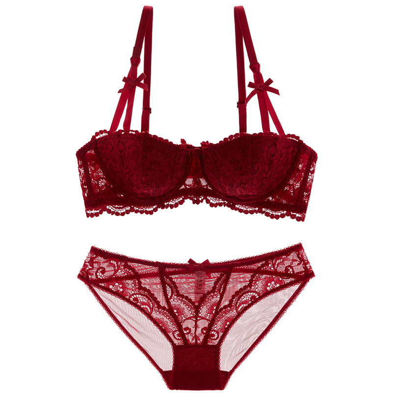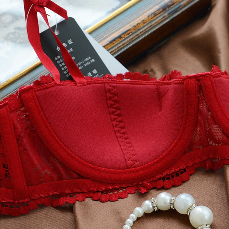 Girls' Beauty House 1 2 Cup Lace Thin Sexy Lingerie Bra Set Half Cup Bra Black Winter