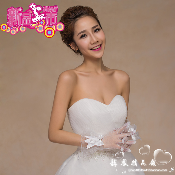 Bride Wedding Dress Bowknot White Gloves Lace Wedding Dress Short Mesh Gloves Korean Style