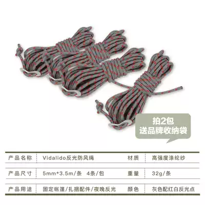 Outdoor tent rope reflective fluorescent indicator rope pp rope 5MM thick high strength fixed safety rope accessories
