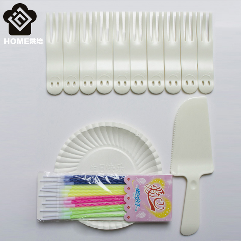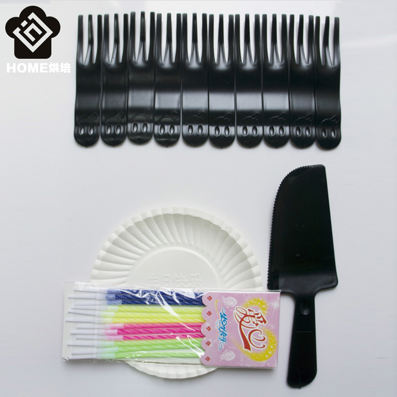Disposable Cake Saucer Knife and Fork Set Birthday Cake Cutlery Four in One 5 People 10 People Combination Cake Cutlery
