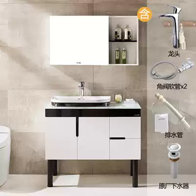 Anhua Bathroom floor-to-ceiling bathroom cabinet combination 90CM hand washbasin PVC cabinet washbasin anPG4392