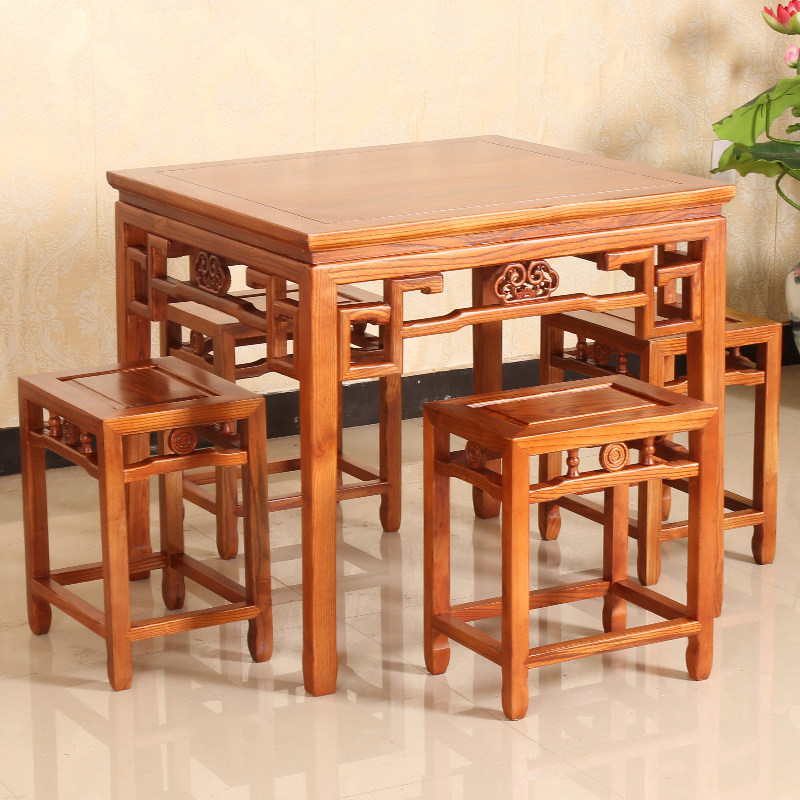 Small square table with 4 dining chairs (excluding cushions) Small square table with 4 copper coin stools Small square table with 4 long benches Eight Immortals table with 8 copper coin stools Eight Immortals table with 4 copper coin stools Eight Immortals table with 4 dining chairs