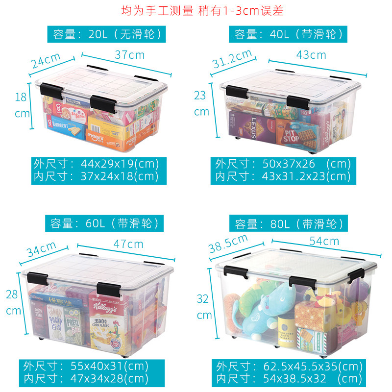 Kangyi sealed moisture-proof box Large storage box Transparent clothing finishing box Storage box with lid food box Car box