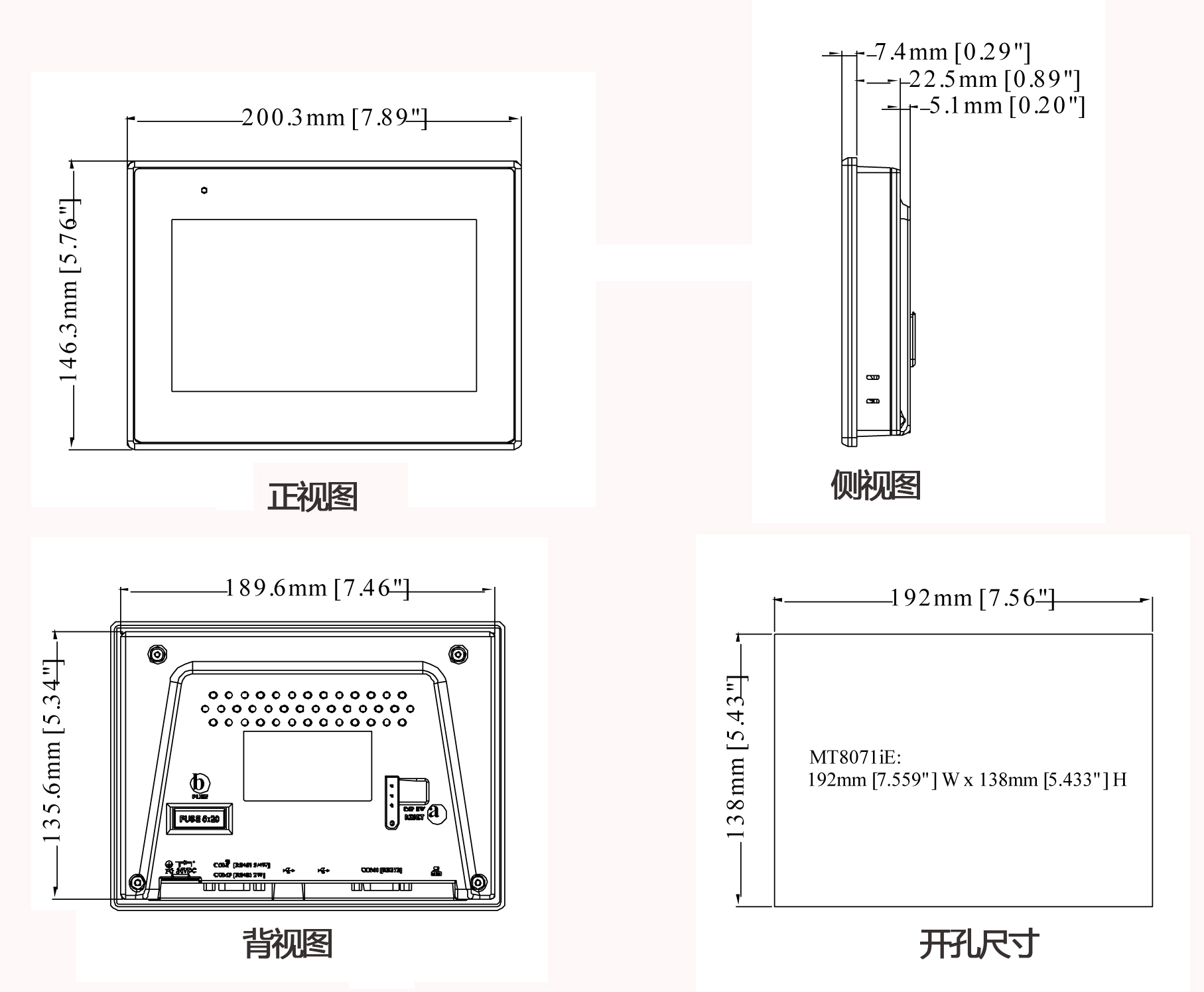 MT8071iE 7 inch Screen MT8071iE plus 3 m Communication Line MT8071IER 7 inch Screen Communication Line Please note PLC Brand Model Drilling Dimensions