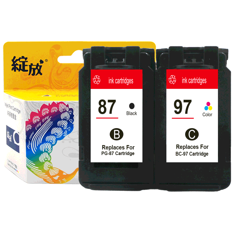 ①PG-87 Black Large capacity (display ink level) easy to add ink ②CL-97 Color large capacity (display ink level) easy to add ink ③PG87 CL97 black color sleeve