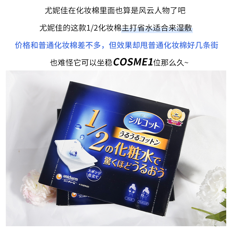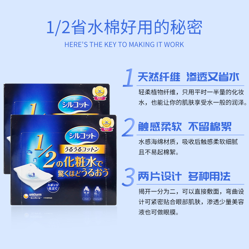 Bonded UNICHARM Yuanija 1 2 1/2 makeup remover cotton 40 pieces of face wet and water special