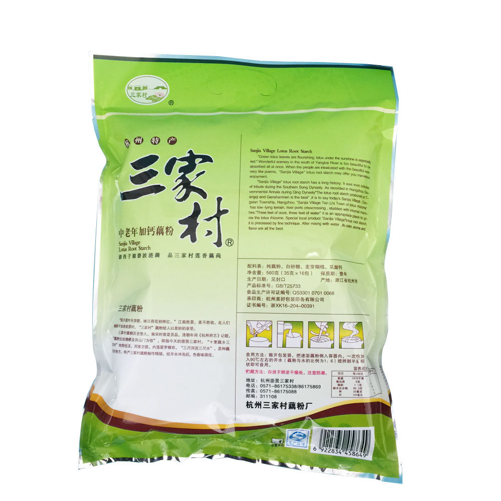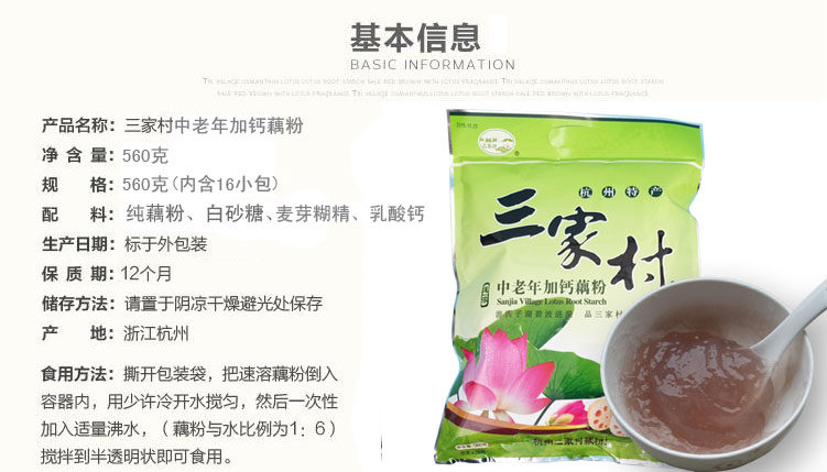 Three Villages Middle Aged Plus Calcium Lotus Root Powder 560g Instant West Lake Lotus Root Powder Flush Beverage Nutritional Lotus Root Powder Spoon Hangzhou Tersan