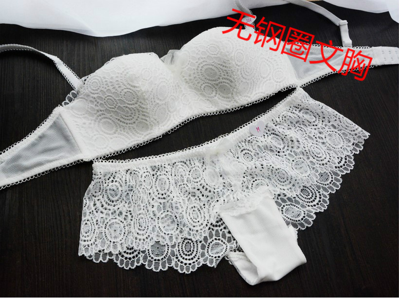 European and American Sexy thick cup of no-scarred black white small breasts gathered without steel ring Pregnant Woman Comfort Sleeping Bra Underwear Suit
