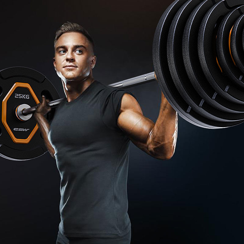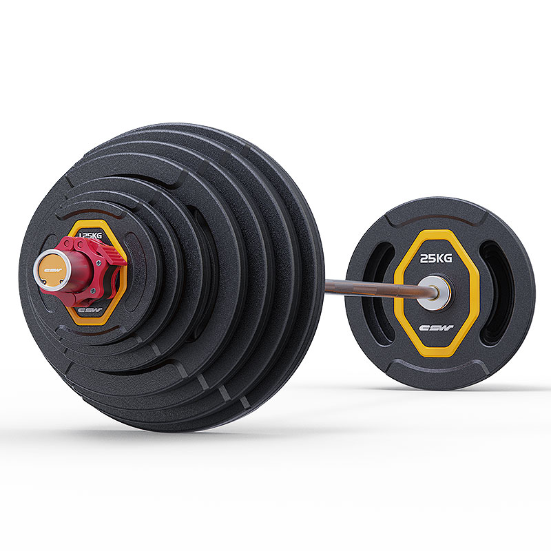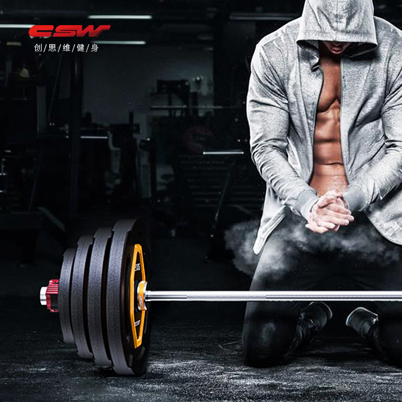 Chuangsiwei fitness barbell dumbbell household combination set Bold Austrian rod large hole hand grip iron core coated barbell piece