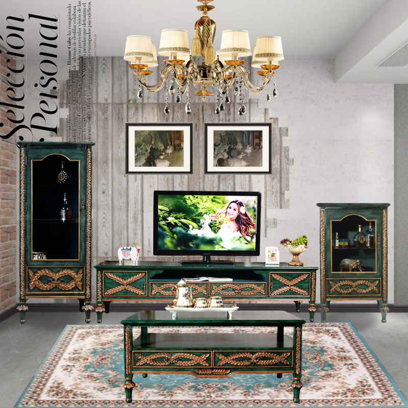American TV cabinet Small household living room 2 meters coffee table combination complete set of Peacock green simple light luxury European TV cabinet