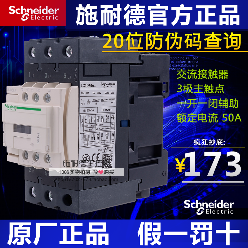 Schneider contactor LC1D50AQ7C LC1-D50AQ7C AC380V 50A AC380V fake one penalty ten