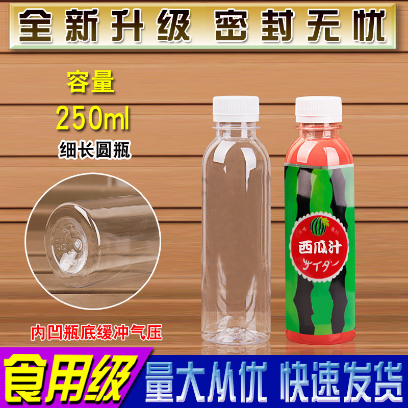 250ml transparent plastic bottle milk freshly packed empty drink sample PET half catty wine delivery with lid disposable