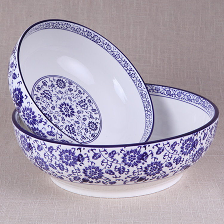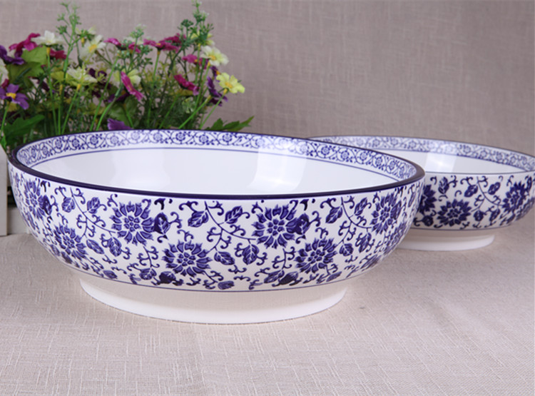 Hotel tableware Blue and white porcelain large soup bowl Ceramic bowl sauerkraut fish boiled fish bowl Soup bowl Vegetable bowl Restaurant noodle bowl