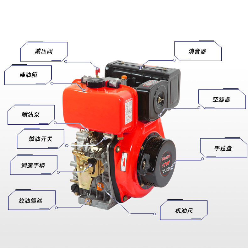 173F 178F Diesel Engine Micro Cultivator Rotary Cultivator Head 6-7 hp Single Cylinder Air Cooled Diesel Powered