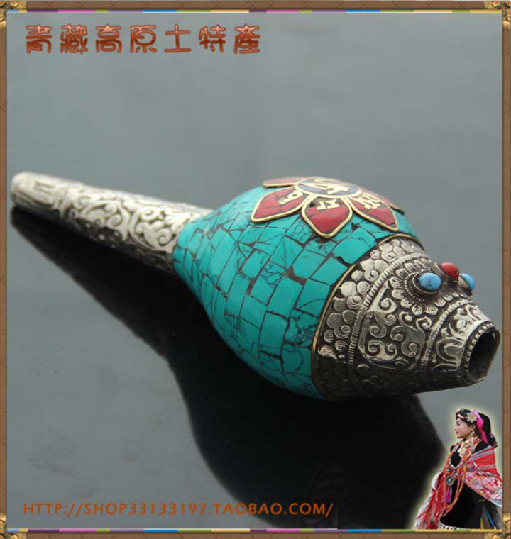 Nepal imports outsourcing Tibetan silver inlaid with turquoise six-character mantra right-handed white conch tantric instrument