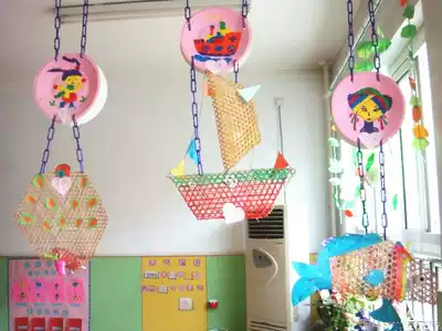 Kindergarten hanging decoration Indoor corridor air hanging creative design decoration handmade bamboo net hollow mat