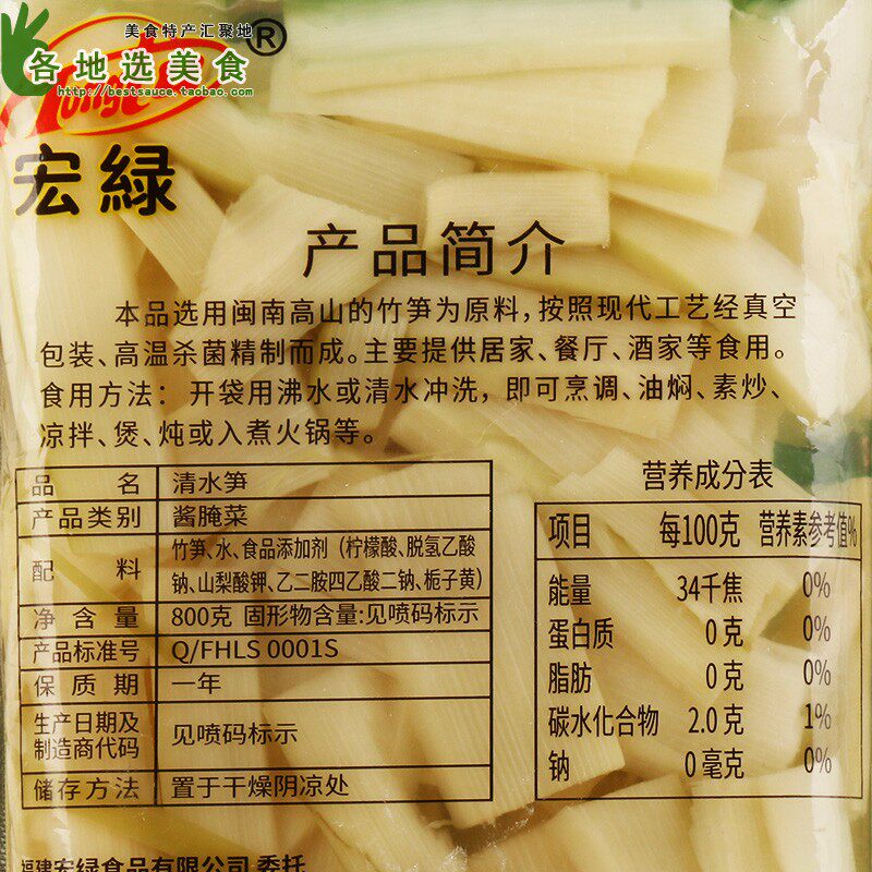 Bamboo shoots water food additives(citric acid dehydroacetate sodium potassium sorbate ethylenediamine tetraacetate disodium gardenia yellow), etc to the actual information of the product packaging as accurate